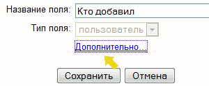 После добавления поля вы увидите появившуюся ссылку с названием поля, а рядом - его тип.