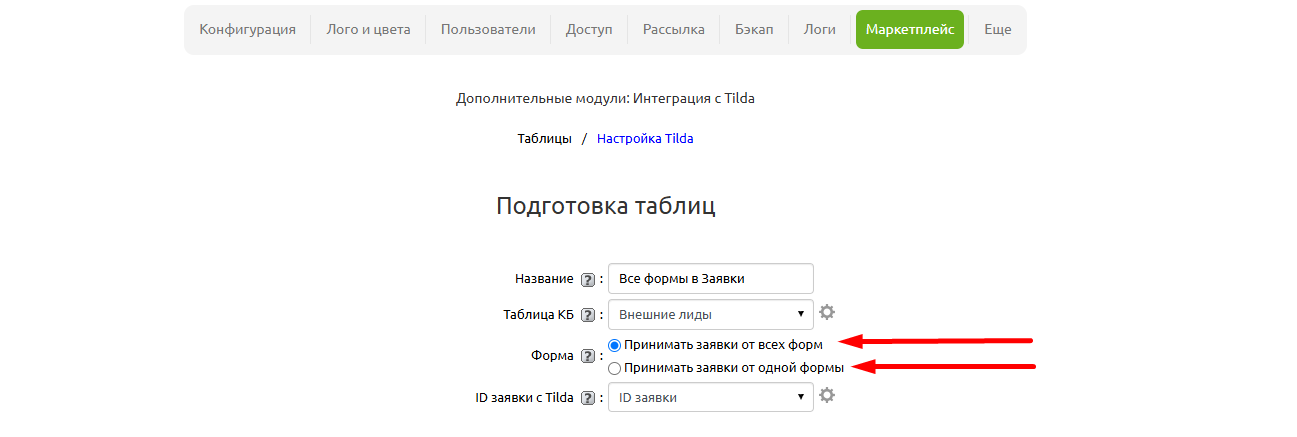Модуль "Интеграция с Tilda" входит в линейку Pro на SaaS и лицензиях.