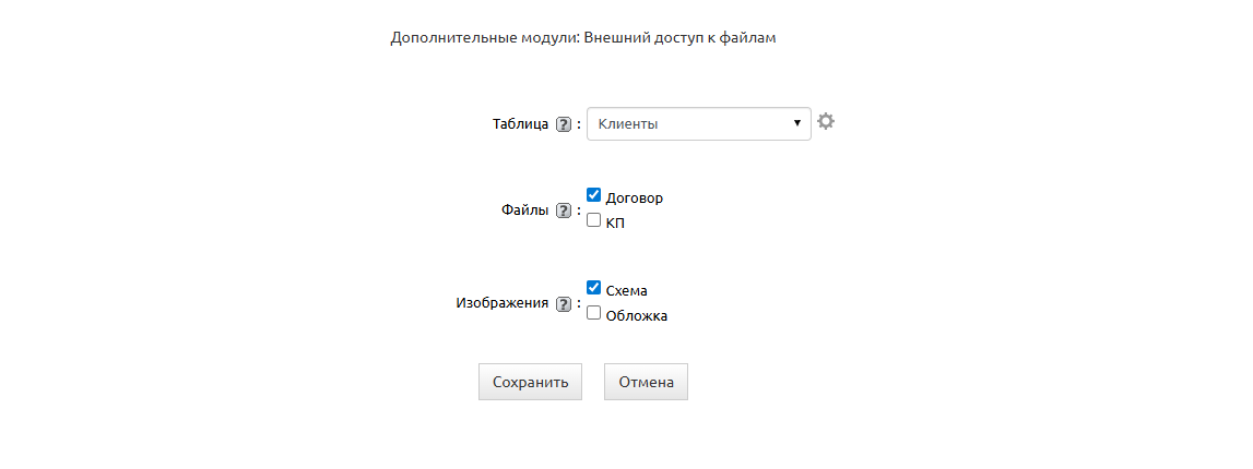 Модуль «Внешний доступ к файлам» позволяет предоставлять безопасный доступ к файлам и изображениям из вашей базы без авторизации. Генерируйте защищённые внешние ссылки на вложения, чтобы клиенты и партнёры могли скачивать документы прямо из писем, мессенджеров или с сайта — без необходимости открывать доступ к самой CRM.