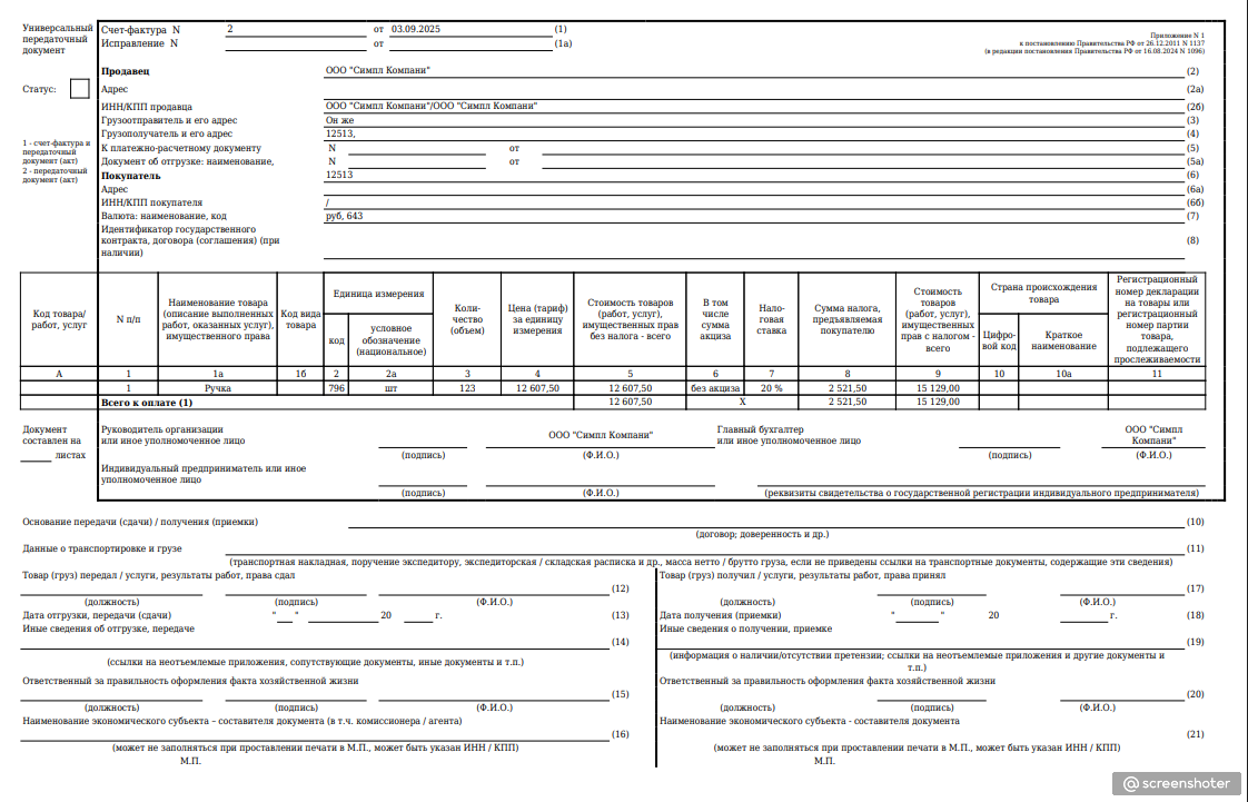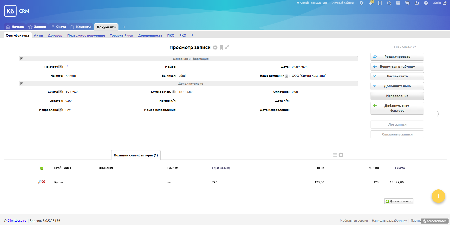 Формируйте счета-фактуры, УПД, акты, доверенности, платёжные поручения, ПКО, РКО и товарные чеки — быстро, удобно и без ошибок.